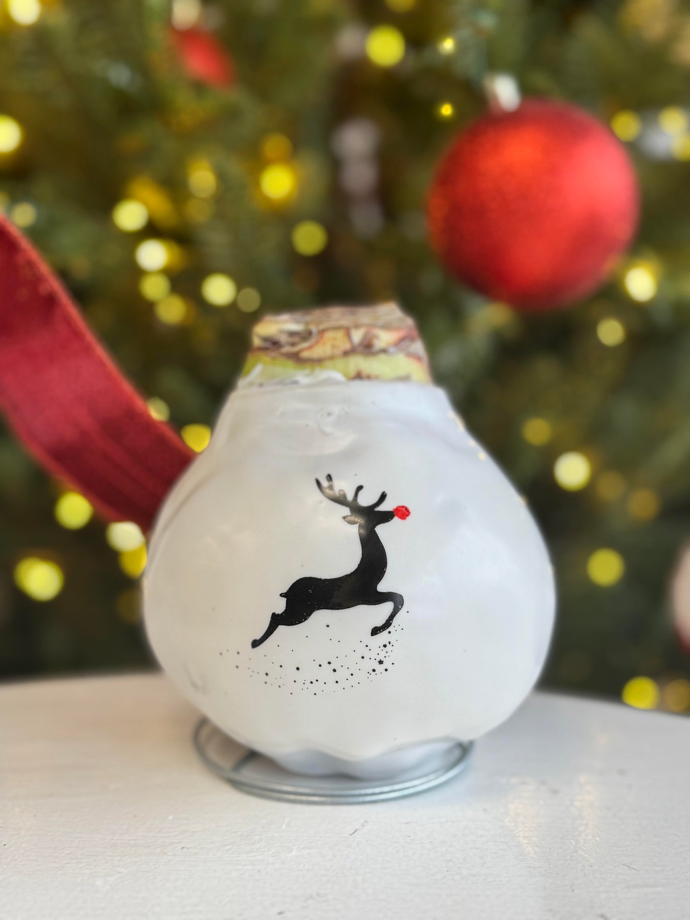 Amaryllis in White Wax with Reindeer